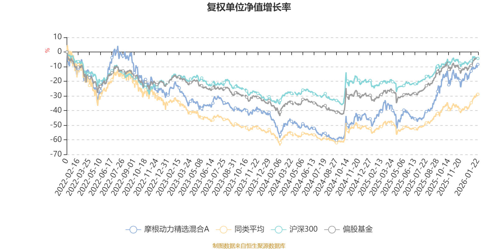 截至1月22日,摩根动力精选混合A近三个月复权单位净值增长率为12.53%,位于同类可比基金51/100;近半年复权单位净值增长率为54.23%,位于同类可比基金6/100;近一年复权单位净值增长率为60.87%,位于同类可比基金21/92;近三年复权单位净值增长率为20.79%,位于同类可比基金26/68。